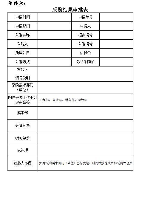7.采購評審小組形成采購報告,由成本部或需求部門(單位)根據(jù)需要發(fā)起《采購結(jié)果審批表》,按照評審結(jié)果確定成交供應(yīng)商;