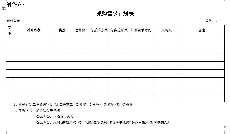 (一)需求部門(單位)應(yīng)按照要求及時提報年度、季度采購需求計劃表。其中: