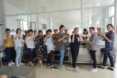 敬老的光榮傳統(tǒng),集團女工委特意邀請退休職工張大姐進行現(xiàn)場指導。配料、折葉、扎繩、蒸煮,大家分工明確、各顯其能,整個過程充滿了歡聲笑語。經(jīng)過辛勤勞作,幾百個形態(tài)各異的粽子新鮮出爐,清爽甘醇的味道飄滿了整個食堂,看著大家熱火朝天的勁頭,張大姐不時給予了贊許的目光。