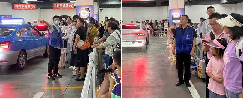 “請您到這邊排隊上車”“行李我?guī)湍帷薄罢埿⌒纳砗筌囕v”,活動當(dāng)天,地下車庫高溫悶熱,城建集團“WE先鋒”黨員志愿者們汗流浹背,衣服全部濕透,但大家無怨無悔,不畏高溫酷暑,堅持奮戰(zhàn)在客運一線,他們始終面帶笑容,不畏辛苦勞累,認(rèn)真履職,贏得了過往乘客的一致好評。