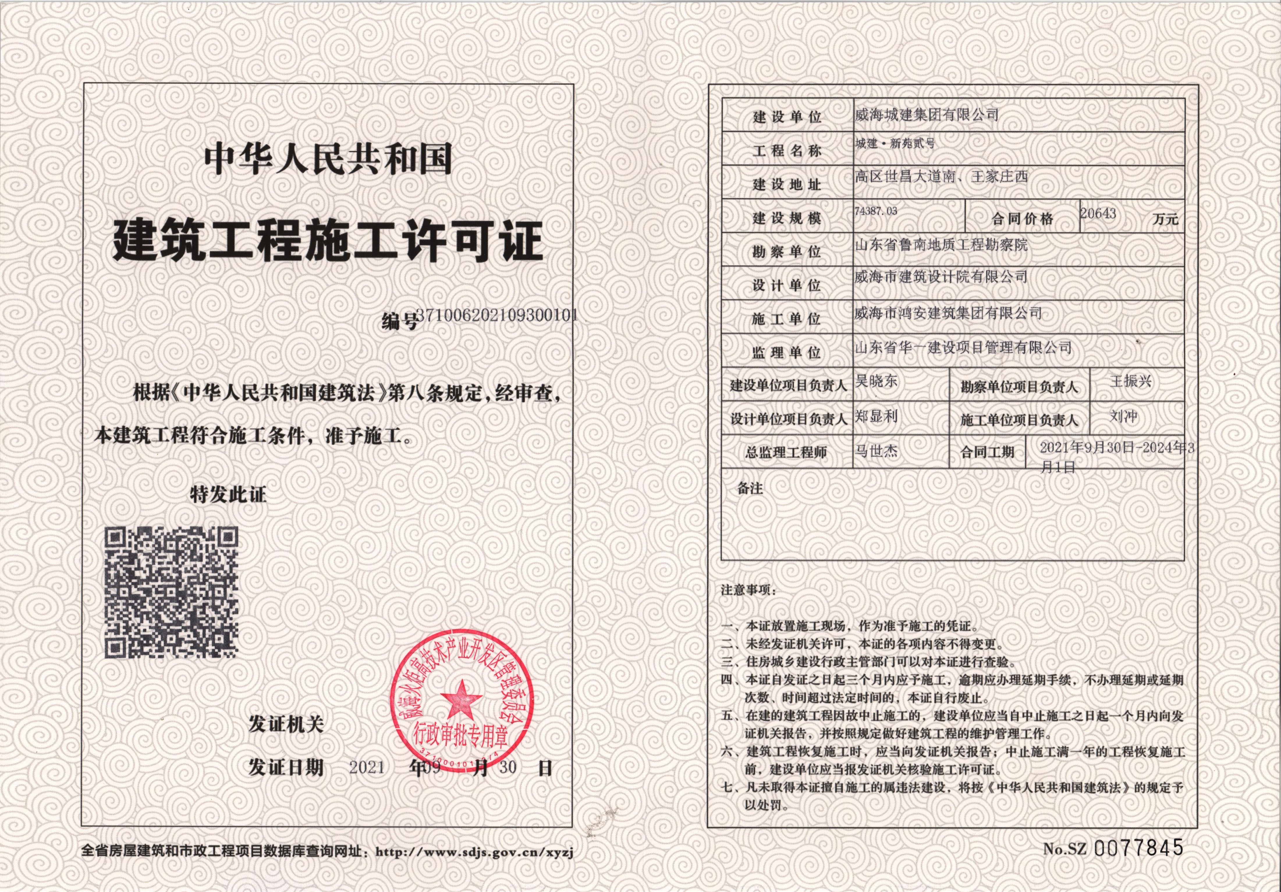 建設(shè)單位:威海城建集團(tuán)有限公司                       負(fù)責(zé)人:吳曉東